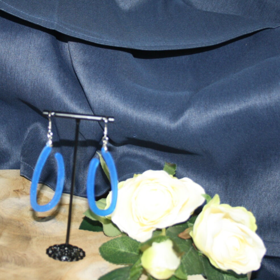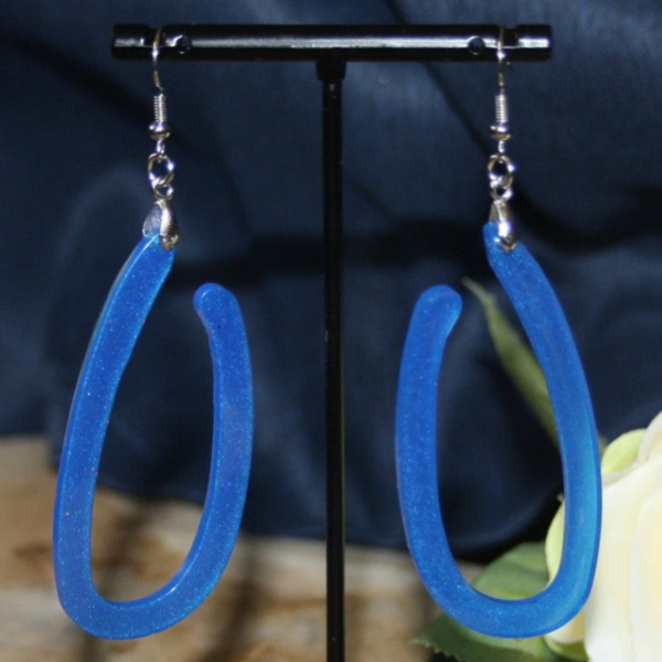 Unieke open koningsblauwe oorbellen gemaakt van epoxy.