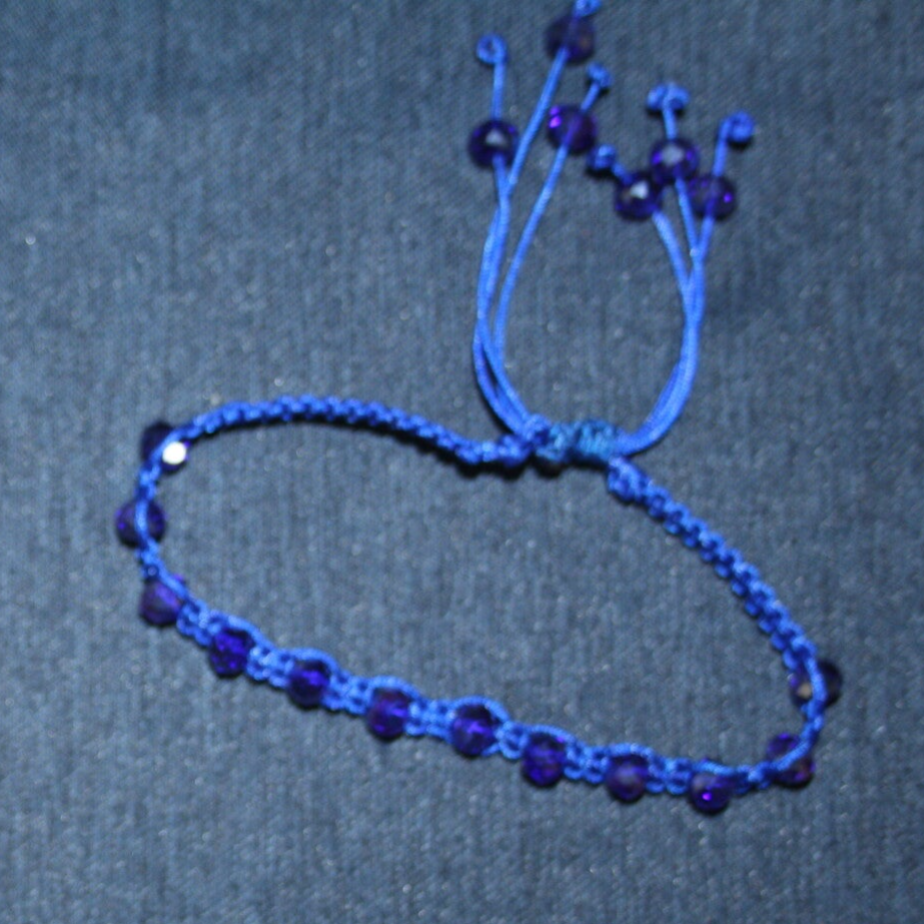 De armband is gemaakt van nylondraad en is verstelbaar door aantreksluiting.